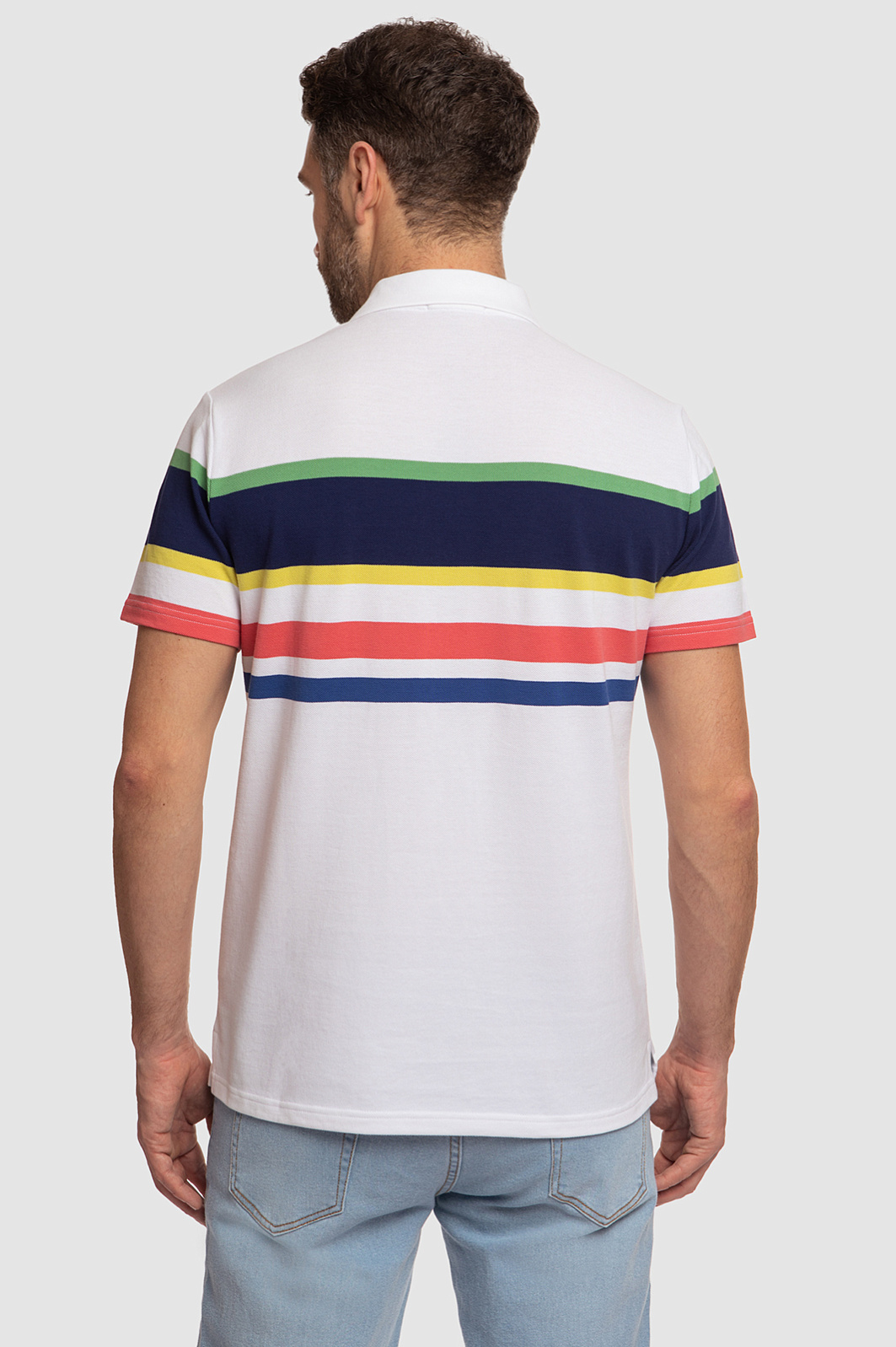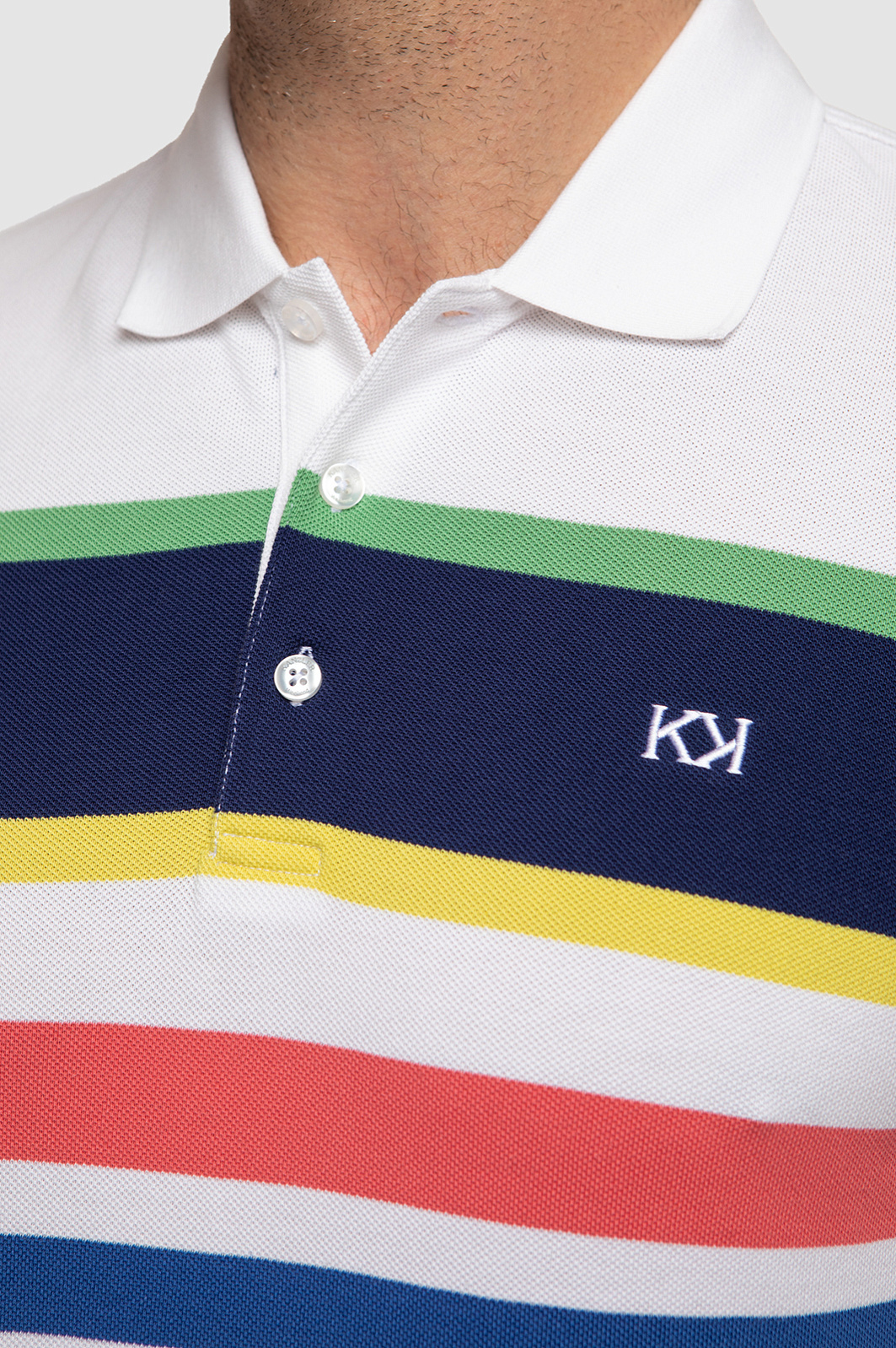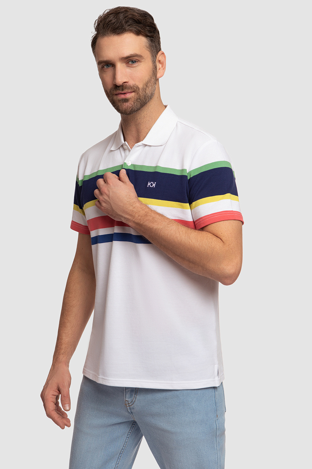 Поло KANZLER прямого кроя с отложным воротником станет ярким акцентом мужского образа. Модель получилась одновременно комфортной, практичной и современной. Благодаря цветным геометричным полоскам поло выглядит ярко и свежо, а основное белое полотно позволяет изделию легко сочетаться с другими элементами гардероба. С полосками спереди отлично рифмуется вышитый логотип бренда в виде двойной заглавной буквы K. Дизайнеры сшили его из мягкого хлопкового трикотажа. Шелковистый на ощупь натуральный хлопок хорошо тянется, поэтому изделие комфортно садится по фигуре и не сковывает движения. Советуем дополнить образ прямыми джинсами. Параметры модели: рост 189, 102-80-99 Размер на модели: М