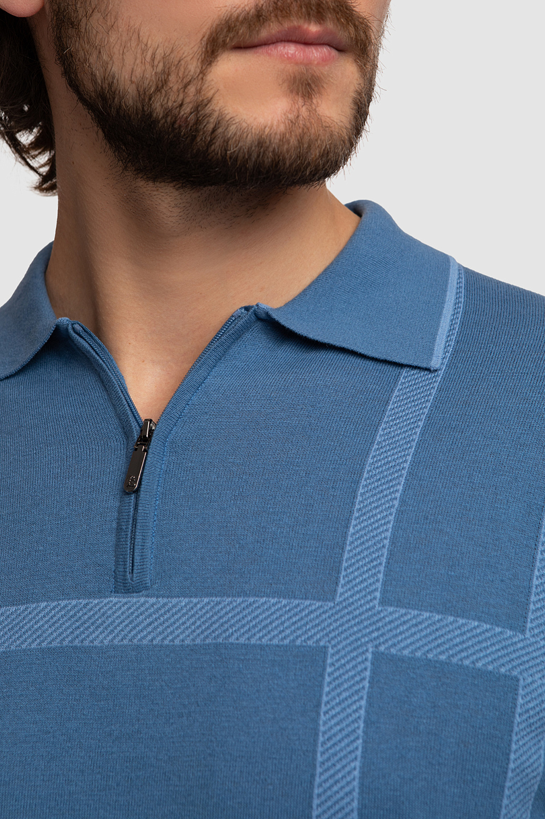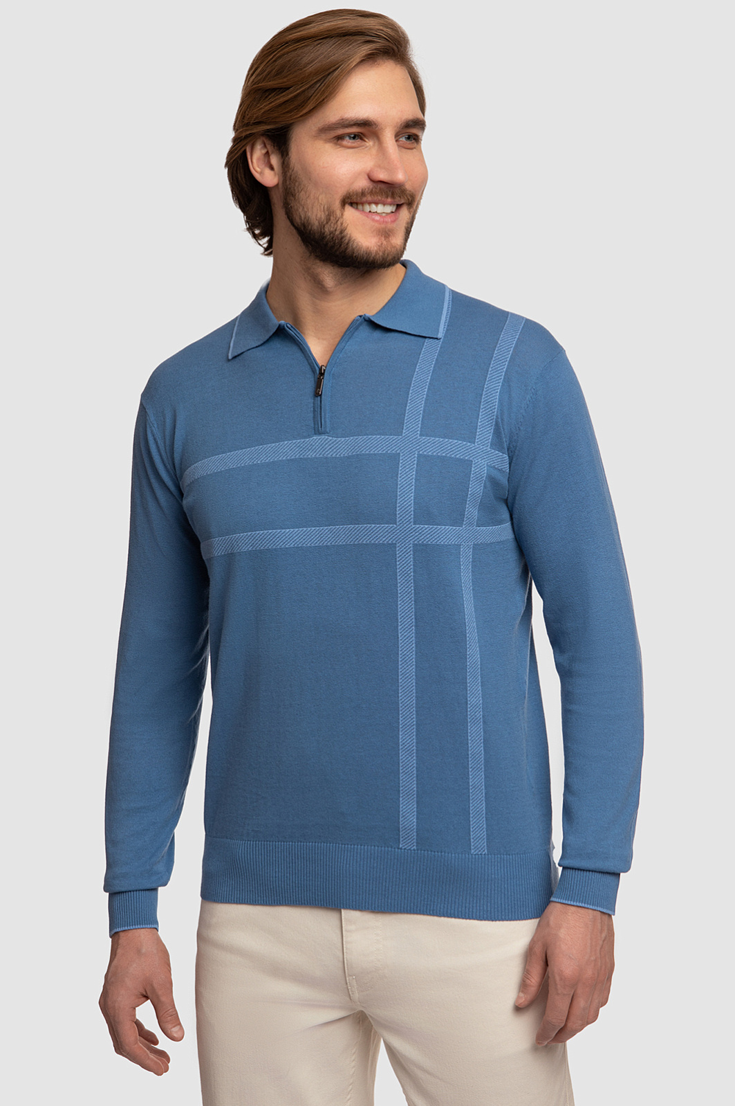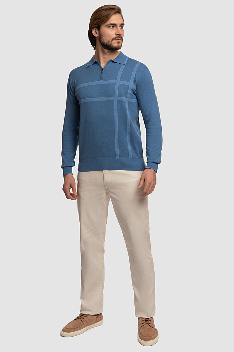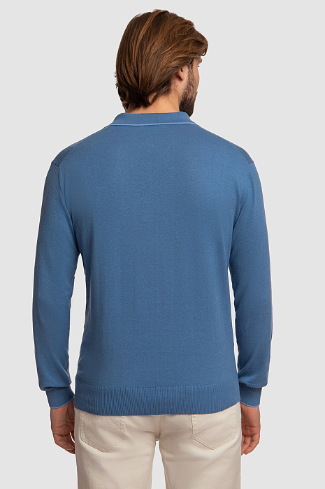 Поло KANZLER насыщенного оттенка весеннего неба освежит палитру повседневного гардероба. Для усиления эффекта от цвета использовали геометрический рисунок, который усложняет стилистику изделия и контрастный кант на отложном воротнике. Однотонное поло с длинным рукавом выполнили из тонкого гладкого трикотажа на основе органического хлопка с добавлением шелковистого льна. Мягкий, легкий и приятный на ощупь материал надолго сохраняет безупречный внешний вид, приятно охлаждая кожу. Контактируя с кожей, изделие дарит ощущение мягкости и свежести, а для дополнительного комфорта и свободной посадки дизайнеры предусмотрели трикотажную резинку и манжеты. Удобная застежка на молнию с наконечником, на котором деликатно обозначили принадлежность изделия бренду. Параметры модели: рост 187, 108-88-104 Размер на модели: L