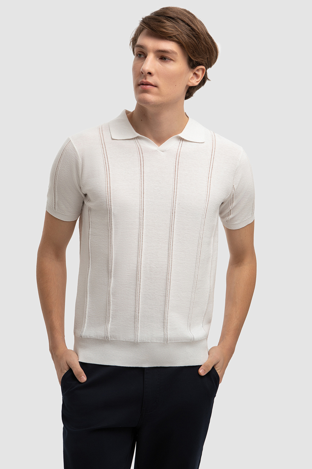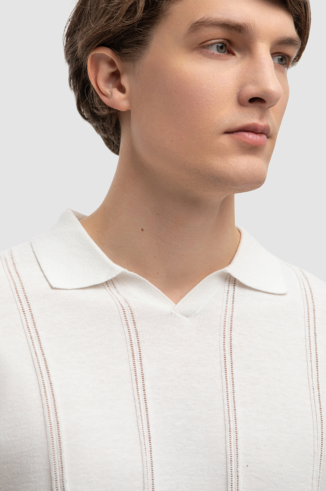 Поло из хлопка и льна, цвет белый, цена 49 990 тенге, код 267265 - купить в Астане в интернет-магазине KANZLER