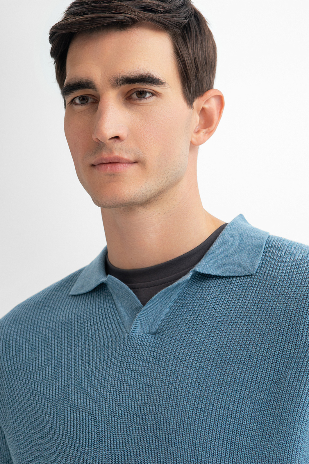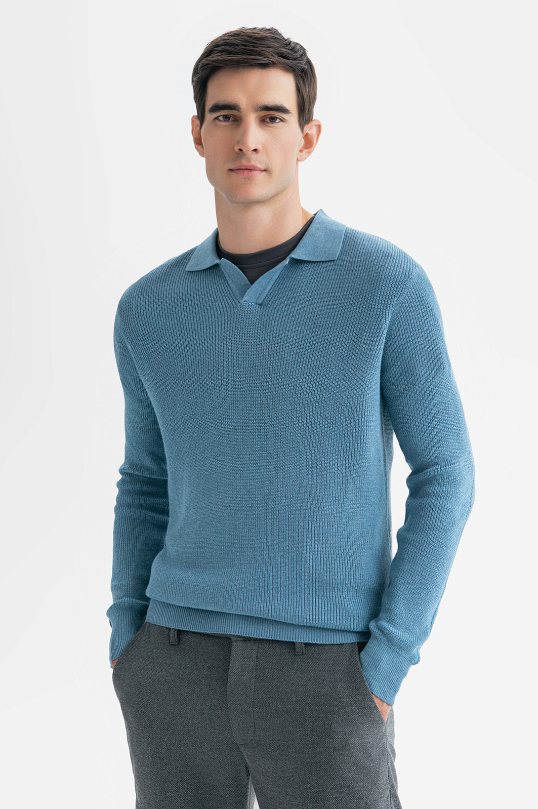 Голубое поло из хлопка и кашемира