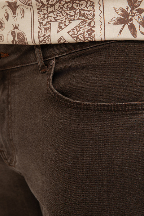 В новом сезоне коричневый значится в списке главных цветов мужского гардероба. При этом самое модное воплощение коричневый цвет получил в виде вещей из денима. Поэтому в коллекции KANZLER появились стильные джинсовые бермуды чуть выше колен. Для пошива модели использовали мягкий хлопок, не препятствующий циркуляции воздуха и стрейч волокна, благодаря которым изделие прямого кроя прекрасно садится по фигуре. Бермуды отлично сочетаются практически с любым верхом: рубашкой с длинным или коротким рукавом, футболкой или поло с отложным воротником. Комбинируйте верх таким образом, чтобы он сочетался с оттенком шорт. Например, стильно выглядит комплект с футболкой с принтом песочного оттенка. В качестве декора дизайнеры добавили брендированный патч из натуральной кожи в тон изделия. Параметры модели: рост 191, 97-77-99 Размер на модели: 34