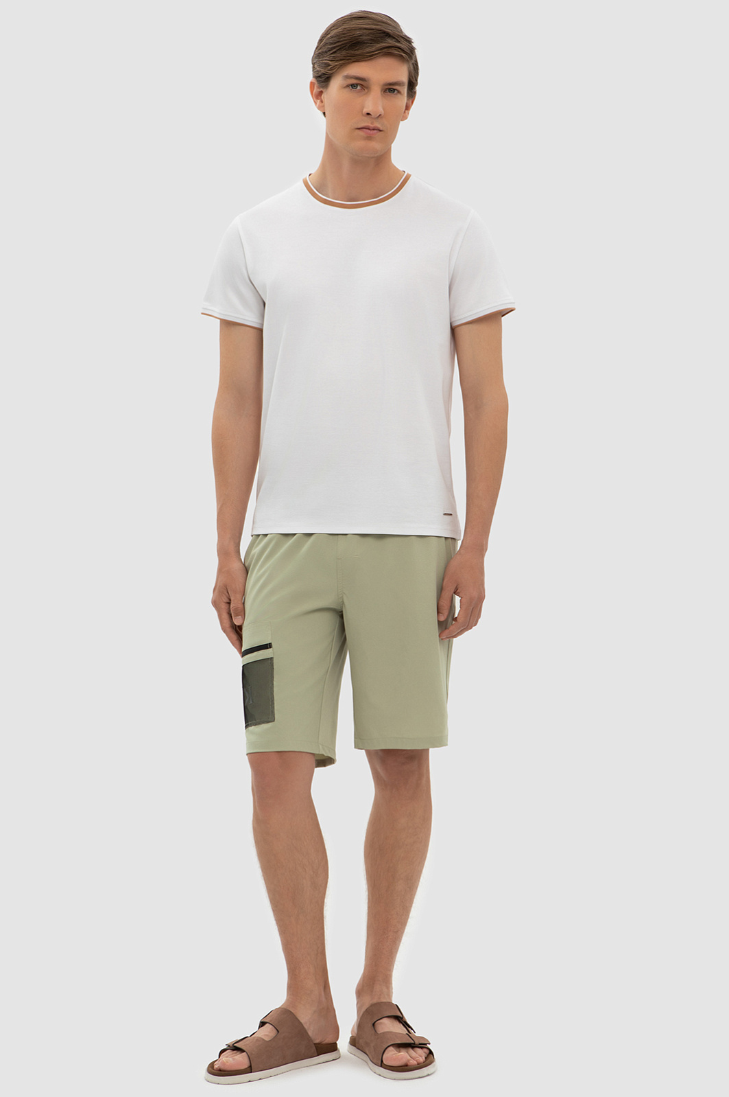 Универсальные плавательные шорты KANZLER длиной чуть выше колена – оптимальная модель для отдыха и путешествий, которая подходит абсолютно всем. Для пошива модели припыленного оттенка хаки дизайнеры марки использовали прочный смесовый материал на основе полиэстера, который не раздражает кожу и не прилипает к ногам во время купания. В состав добавили спандекс для лучшей посадки по фигуре и эластичности изделия. Широкий пояс-кулиска помогает отрегулировать посадку изделия на талии и отвечает за комфорт. В качестве декора - акцентный карман-сетка и брендированные элементы на боковом кармане и сзади. Приятный к телу материал не впитывает воду и быстро сохнет. Шорты обеспечат комфорт во время отдыха и на пляже или возле бассейна. Параметры модели: рост 191, 97-77-99 Размер на модели: M