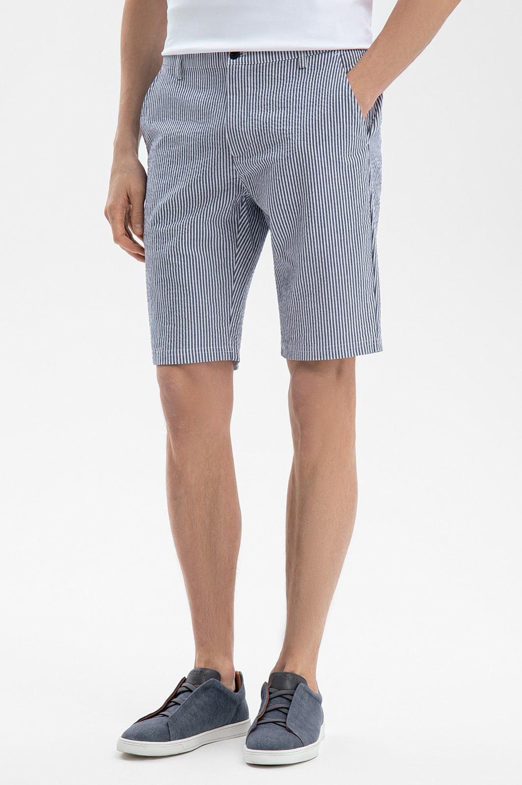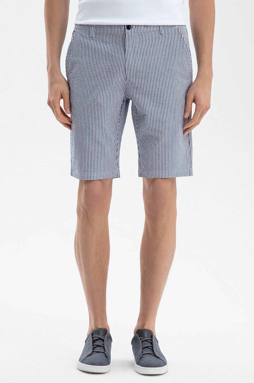 Бермуды из хлопка и льна в полоску, цвет синий, цена 69 990 тенге, код 269097 - купить в Астане в интернет-магазине KANZLER