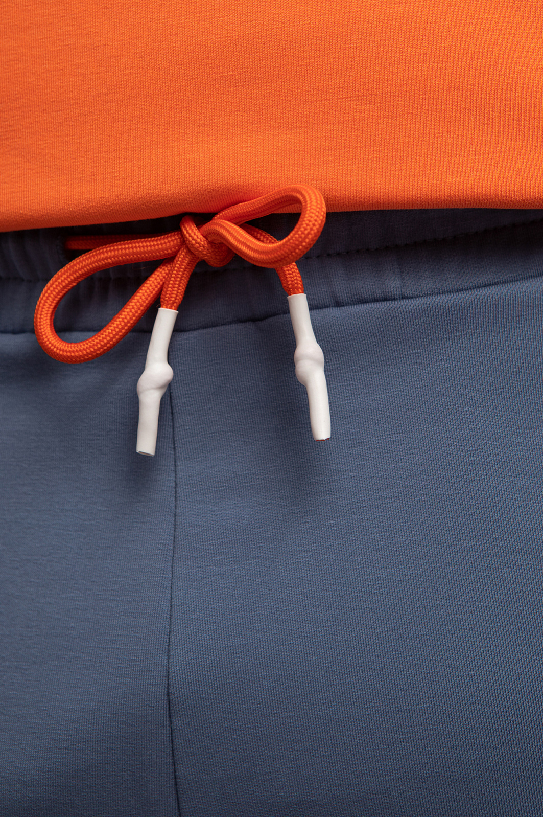 В серых трикотажных шортах будет комфортно и во время тренировок, и на загородной прогулке, и в путешествии. Для пошива изделия использовали мягкую натуральную ткань из премиального хлопка с добавлением нейлона и эластана. Состав обеспечивает легкость и прочность, малую сминаемость и устойчивость к растягиванию, что особенно необходимо для спортивной одежды. Принадлежность модели бренду обозначили контрастным логотипом на заднем кармане. В качестве основного стилистического элемента дизайнеры использовали прием, который позволяет комбинировать в образе разные оттенки геометричными блоками. Тему цветовых приемов продолжили контрастными деталями: шнурки, наконечники и брендированный патч. Получилось эффектное сочетание светло-серого, оранжевого и белого - идеально для образов в стиле спорт и спорт-шик. Шорты KANZLER хорошо пропускают воздух, приятно ощущаются на теле, а благодаря регулируемому поясу на кулиске, не сковывают движения. Наши стилисты советуют дополнить образ толстовкой из такого же материала и белыми кедами. Параметры модели: рост 187, 100-81-97 Размер на модели: M