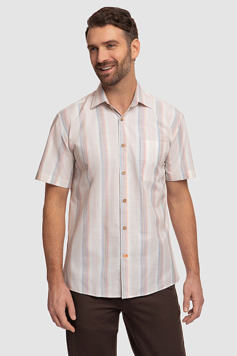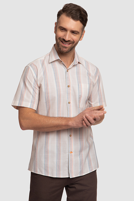 Сорочка с коротким рукавом из хлопка, цвет бежевый, цена 45 990 тенге, код 267323 - купить в Астане в интернет-магазине KANZLER