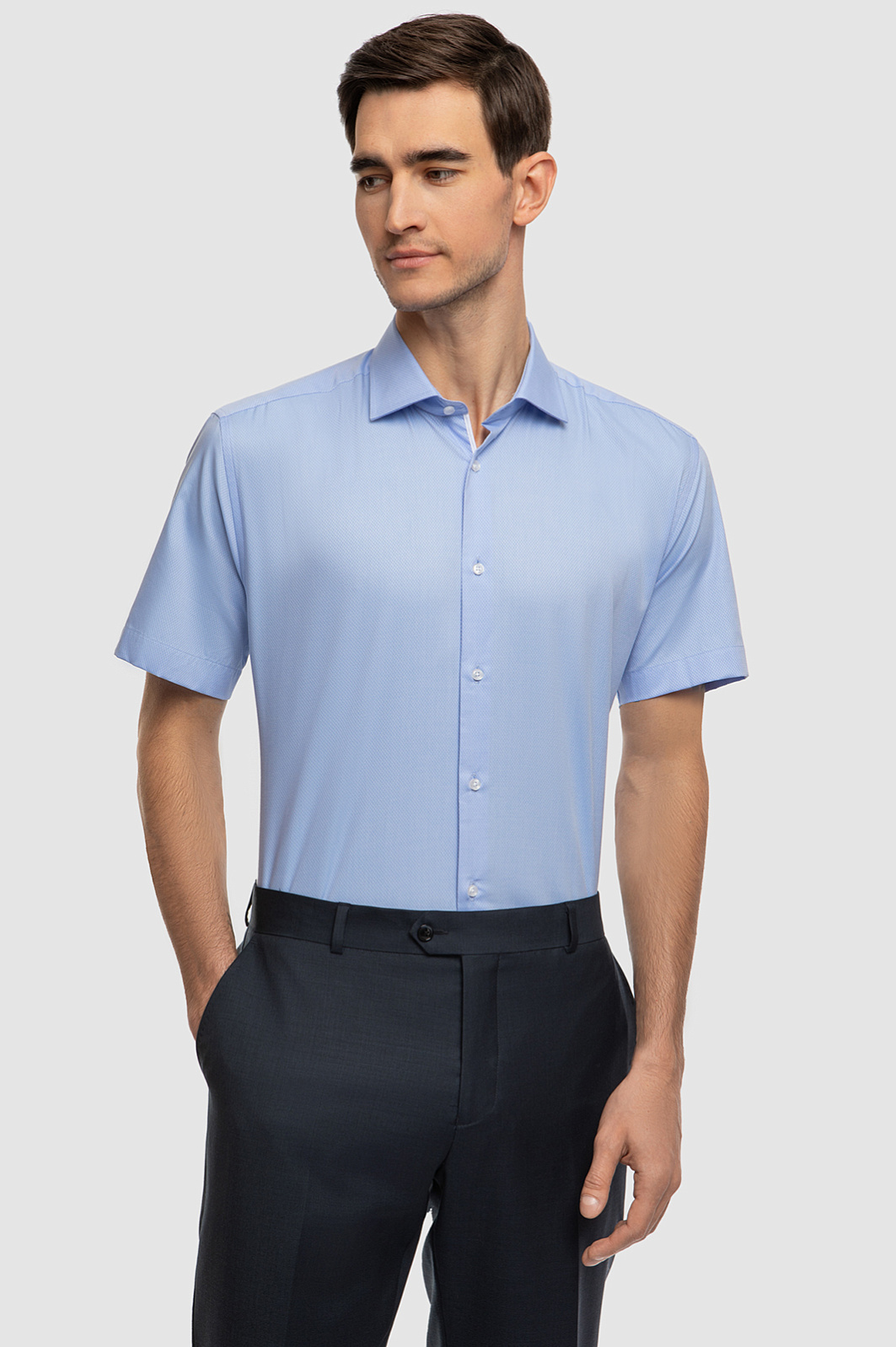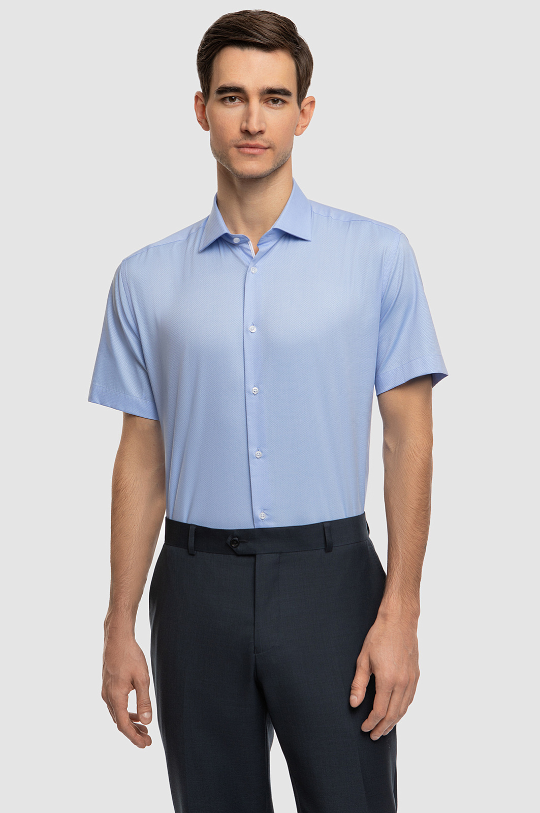 Сорочка с коротким рукавом из хлопка, цвет голубой, цена 39 990 тенге, код 267499 - купить в Астане в интернет-магазине KANZLER