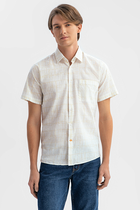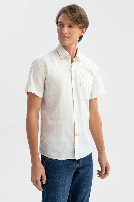 Сорочка с коротким рукавом из австрийской ткани Getzner, цвет бежевый, цена 44 990 тенге, код 269338 - купить в Астане в интернет-магазине KANZLER