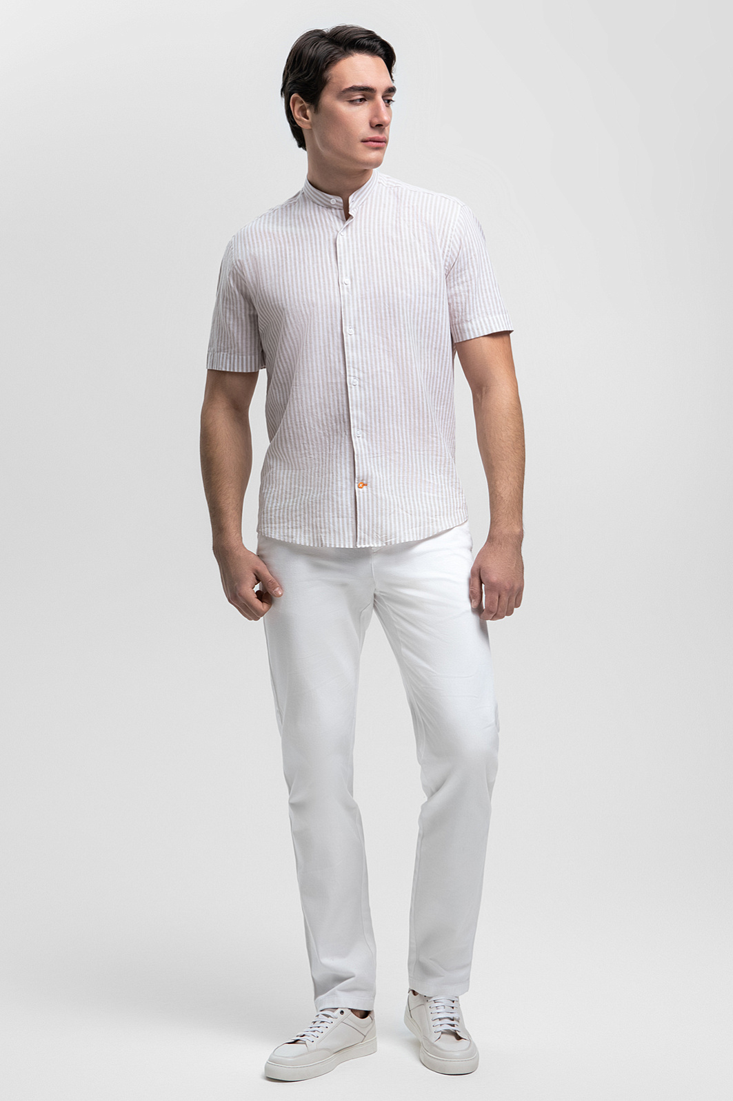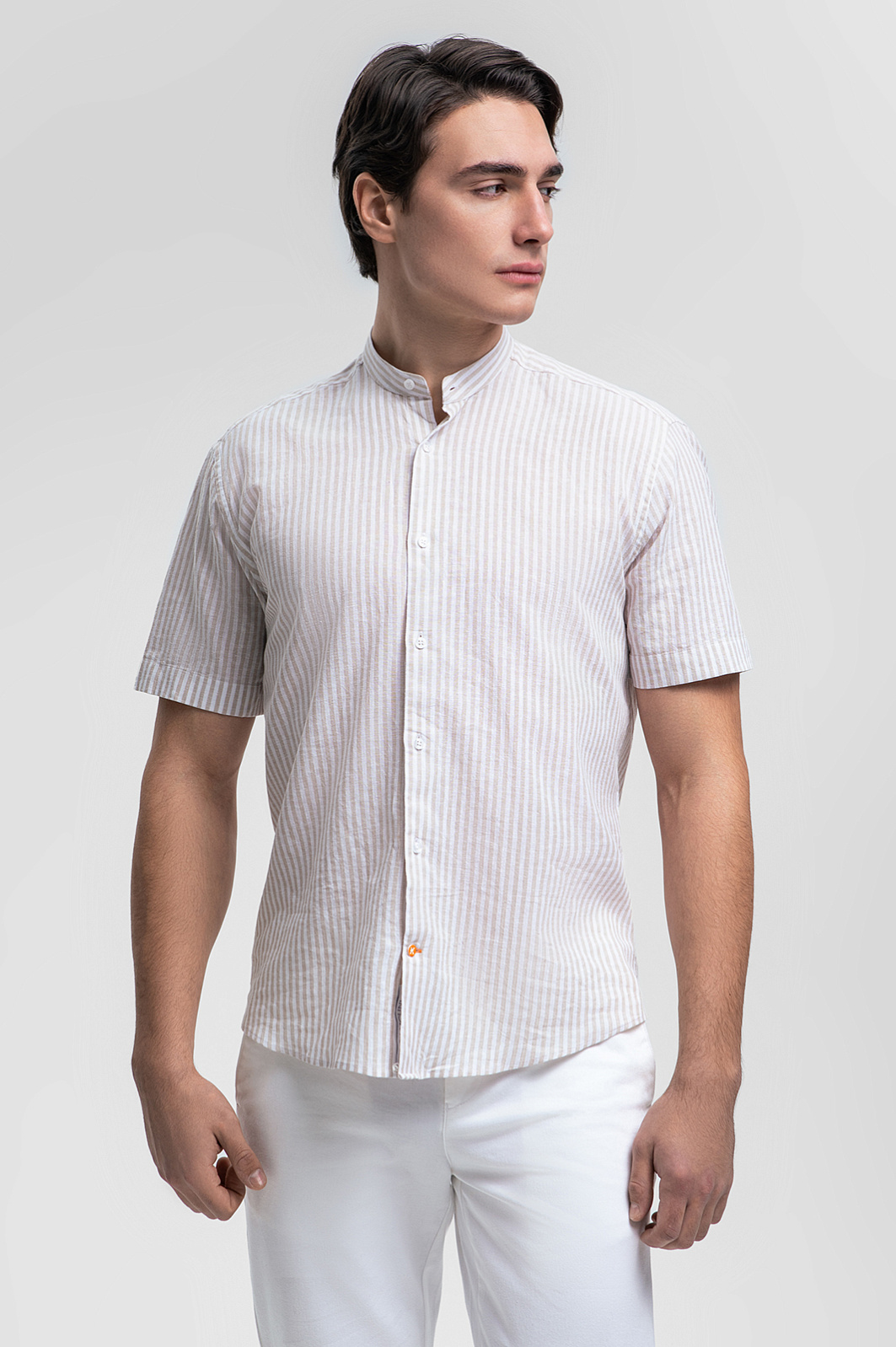 Сорочка KANZLER с коротким рукавом идеально подойдет для теплых дней, чем бы они ни были наполнены: прогулка вдоль побережья, встреча с деловыми партнерами в неформальной обстановке или вечеринка. Премиальный материал от итальянского дома Canclini сочетает лучшие качества натуральных волокон: лен дарит прохладу в жаркий день, обеспечивает прочность и создает интересную текстуру, а хлопок служит мягкости и воздухопроницаемости. Воротник-стойка подчеркивает чувство стиля и индивидуальность, а универсальный бежевый оттенок позволяет создавать множество сочетаний. Сорочка станет отличной парой как льняным брюкам или шортам, так и джинсам. Параметры модели: рост 190, 103-83-99 Размер на модели: M