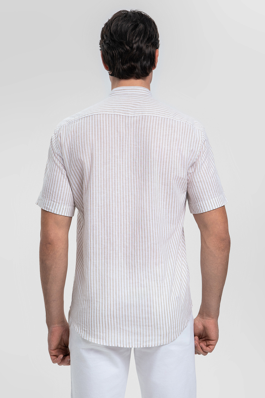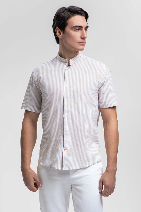 Сорочка с коротким рукавом из итальянской ткани Canclini, цвет бежевый, цена 44 990 тенге, код 269340 - купить в Астане в интернет-магазине KANZLER