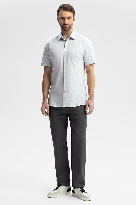 Серая сорочка KANZLER с коротким рукавом из трикотажной ткани премиального качества – воплощение легкости и вневременного стиля. Материал из 100-процентного натурального хлопка, мягкий и дышащий, обеспечивает комфорт в течение всего дня и не деформируется после многократных стирок. Серый оттенок с эффектом меланжа добавляет образу глубины, делая цвет живым и многогранным. Приталенный крой формирует аккуратный, структурированный силуэт, подчеркивая достоинства мужской фигуры. Универсальная модель сочетается как с джинсами или брюками, так и с классическими брюками.