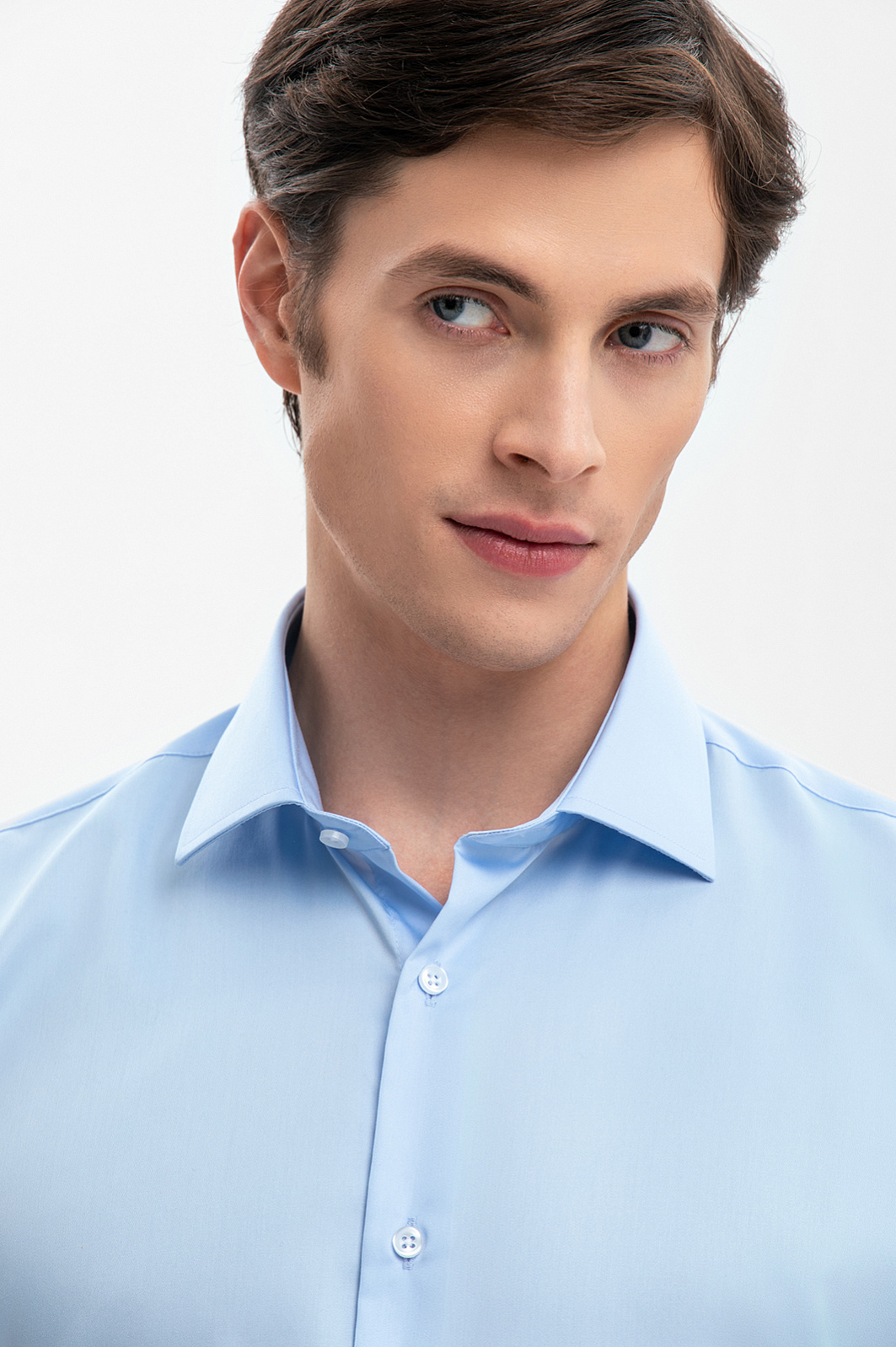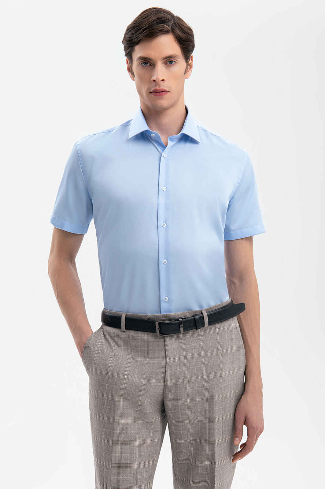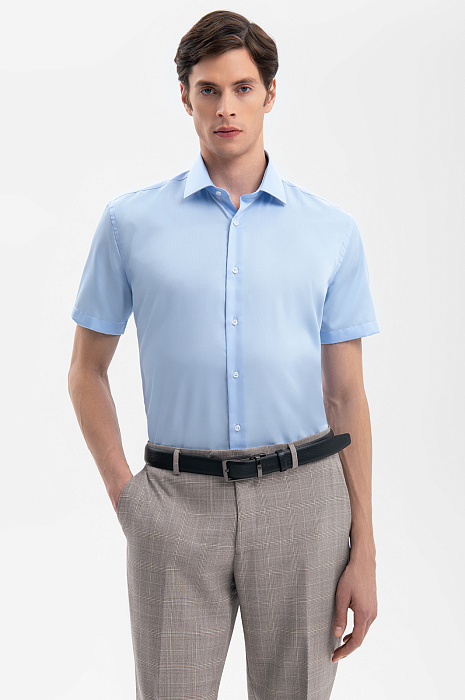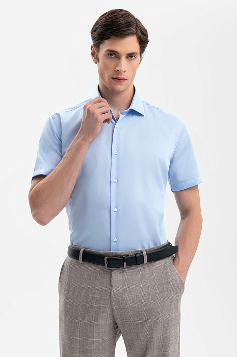 Сорочка с коротким рукавом из хлопка, устойчивая к сминанию, цвет голубой, цена 44 990 тенге, код 269349 - купить в Астане в интернет-магазине KANZLER