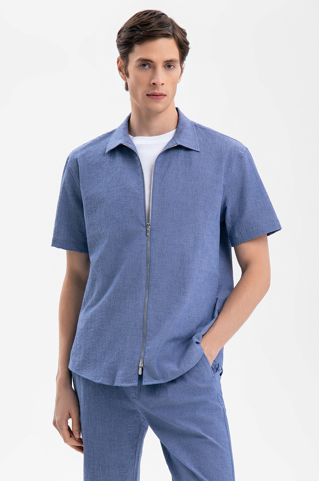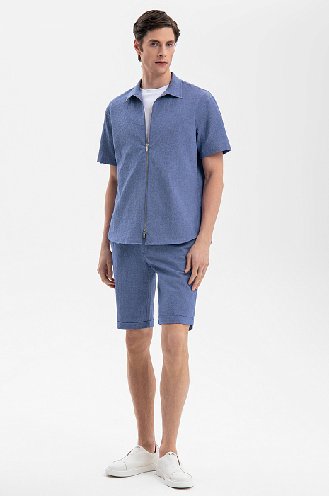 Легкая сорочка KANZLER на молнии из лимитированной коллекции, сшитая из фактурной васильковой хлопковой ткани, — образец современного спортивного дизайна и бескомпромиссного комфорта. Модель свободного кроя с коротким рукавом и удобной двухзамковой молнией незаменима для отдыха. Для создания свежего летнего образа ее можно носить с белой майкой или футболкой. Воздушная ткань из чистого гипоаллергенного хлопка защищает тело от вредного ультрафиолетового излучения и перегрева. Натуральные волокна поддерживают оптимальную температуру и свежесть тела. Параметры модели: рост 189, 91-78-95 Размер на модели: 50