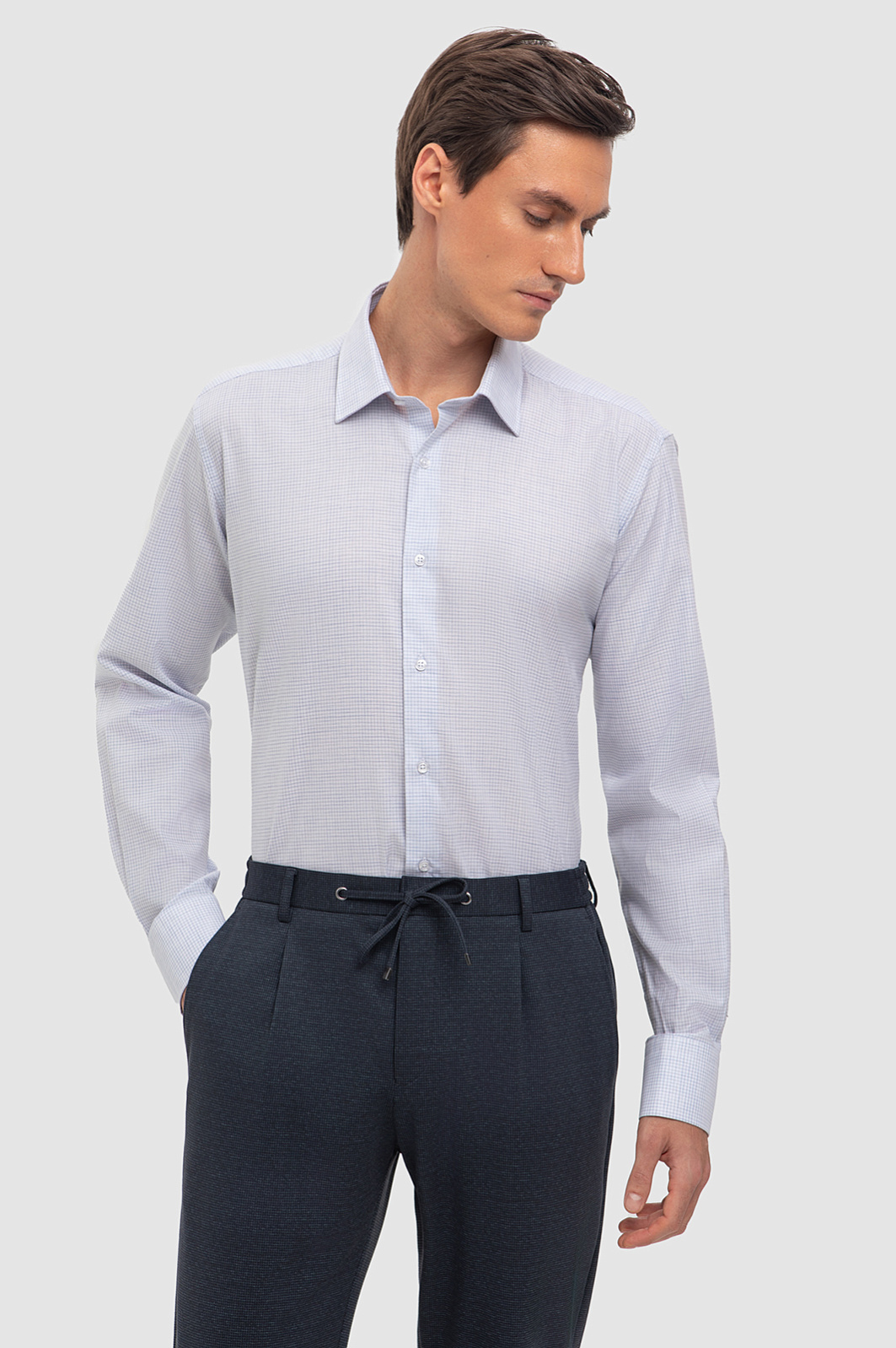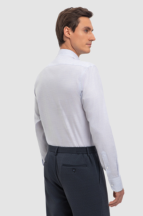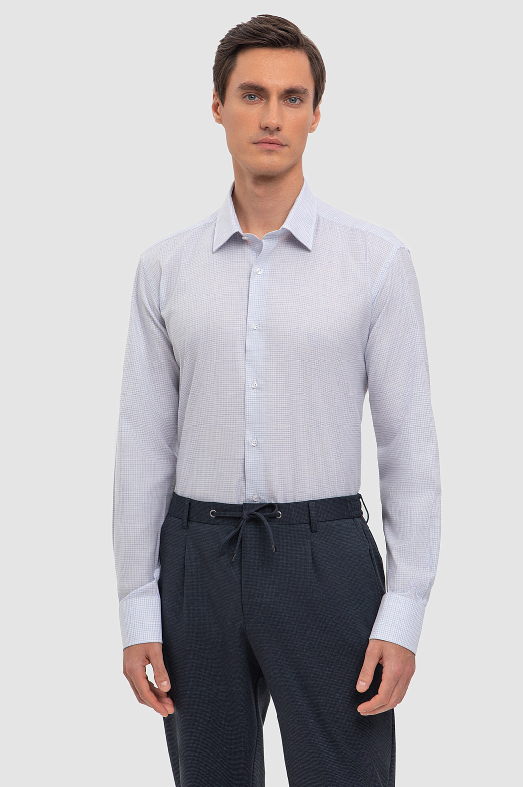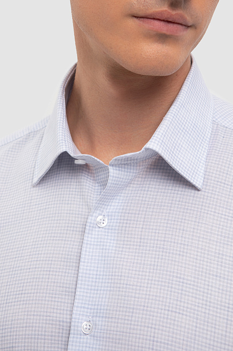 Базовая сорочка с графичным микроузором в клетку гармонично впишется в строгий офисный комплект. Рубашка с длинными рукавами и воротником кент сшита из мягкого хлопкового материала с приятной шероховатой фактурой в практичном сером оттенке. Дышащая ткань хорошо пропускает воздух, обеспечивая постоянный комфорт. Наши стилисты советуют сочетать модель с брюками в синем оттенке. Благодаря приталенному крою и широким манжетам рубашка KANZLER прекрасно дополнит образ с пиджаком в тон и классическими лоферами. Параметры модели: рост 184, 98-74-92 Размер на модели: 40
