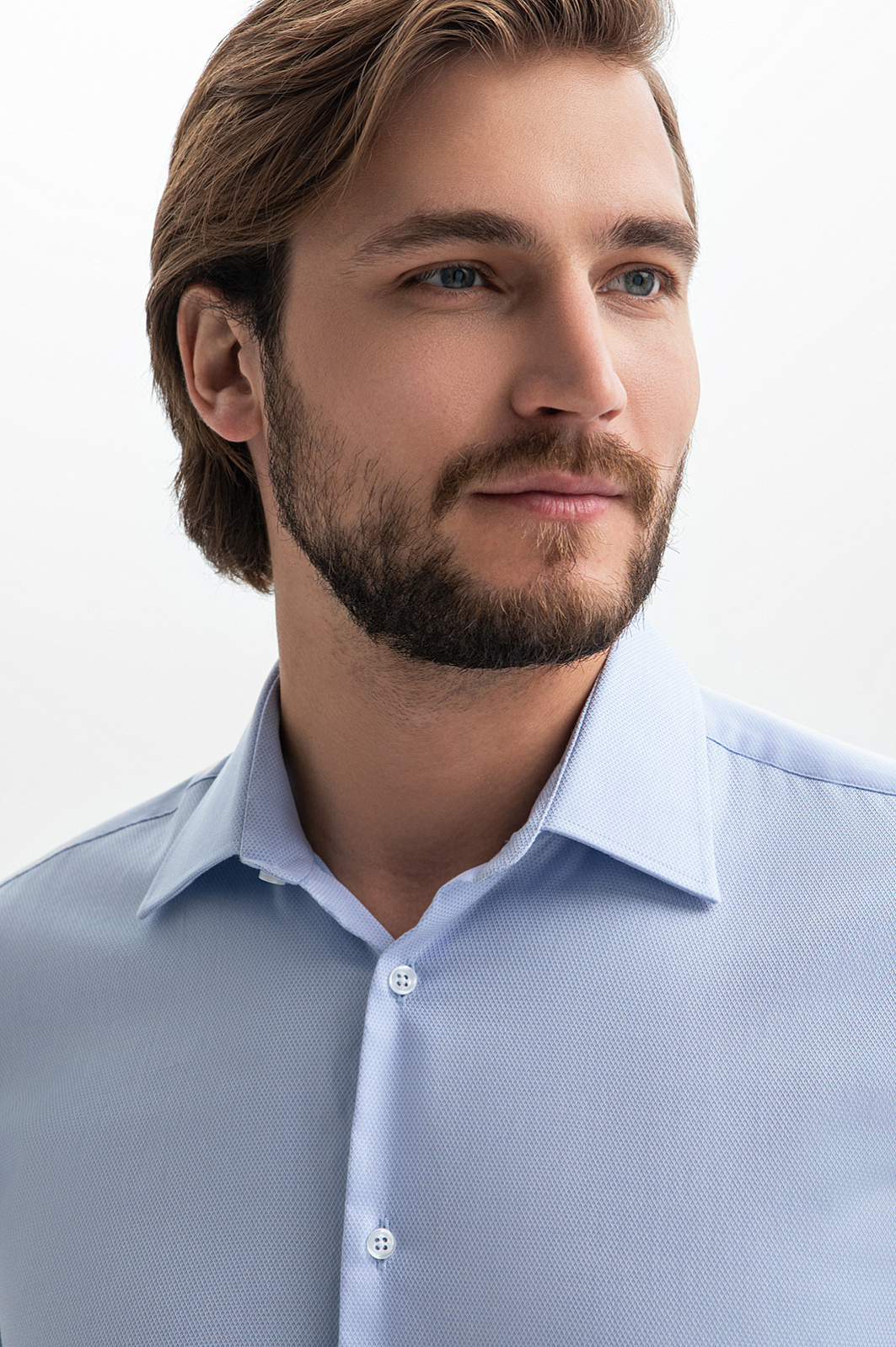 Нежно-голубая сорочка KANZLER из хлопка, устойчивого к сминанию, воплощает стремление носить натуральные благородные ткани и выглядеть аккуратно весь день. Секрет безупречности — небольшое включение эластана (5%), который поддерживает форму материала и не дает ему сминаться. А невесомые воздухопроницаемые волокна хлопка (95%) позволяют коже дышать, берегут свежесть и естественное тепло тела. Сорочка привносит в офисные будни легкость и элегантность. Приталенный крой следует линиям тела, ненавязчиво подчеркивая мужественность. Параметры модели: рост 187, 100-81-97 Размер на модели: 40