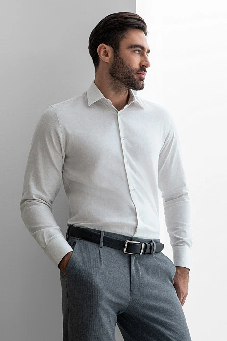 Отличная рубашка на зиму - мягкая, но не мнется, комфортная в носке и глажке. Цвет светло-серый, сама рубашка тоненькая, подойдёт и под пиджак в офис, и под кардиган casual style. Муж доволен.