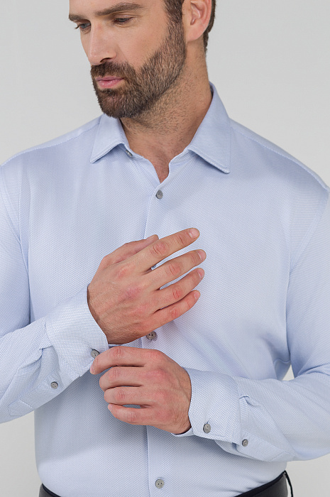 Голубая сорочка KANZLER из лимитированной коллекции — комфортная альтернатива классической белой модели. Выполнена из натурального длинноволокнистого хлопка и нейлона. Хлопок обеспечивает тепло и комфорт, а нейлон придаёт изделию эластичность и прочность. Рубашка с широкими манжетами и аккуратными пуговицами хорошо держит форму и не создаёт избыточной толщины. Модель приталенного кроя идеально садится по фигуре и подходит для носки под пиджак. Универсальный оттенок позволяет легко сочетать ее с различными элементами гардероба - сорочка всегда актуальна и подходит для любого случая. Комбинируйте изделие с классическими брюками и пиджаком из нашей коллекции. Параметры модели: рост 189, 102-80-99 Размер на модели: 40