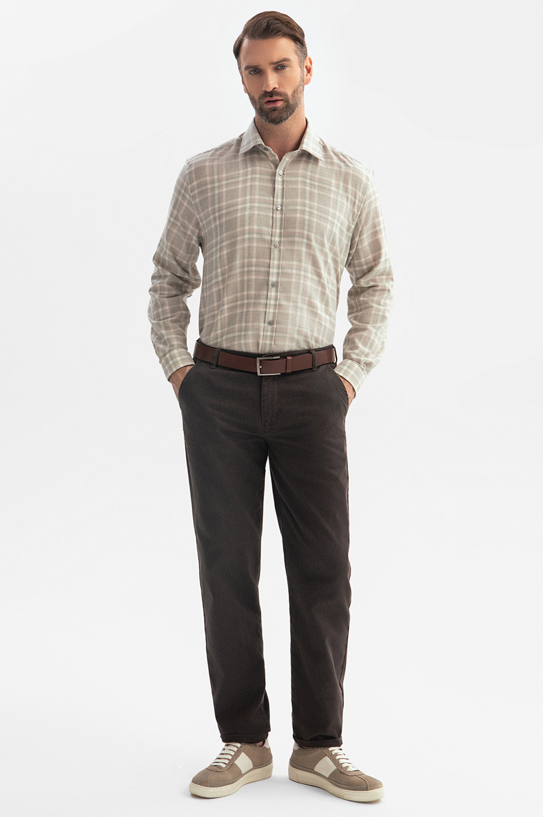 Теплая и уютная бежевая фланелевая рубашка KANZLER в клетку из лимитированной коллекции – модель, в которой каждая деталь создана с вниманием к вашему комфорту. Материал сочетает в себе 85% натурального хлопка и 15% шерсти, что гарантирует долговечность и создаёт исключительное ощущение мягкости и теплоты. Свободный силуэт обеспечивает свободу движений, сохраняя легкость и удобство в течение всего дня, и подходит для любого типа телосложения. Кокетка на спинке позволяет достичь оптимальной посадки по фигуре. Бежевая клетка подчеркивает вашу индивидуальность, добавляя в гардероб классический штрих. Модель идеально подойдет как для создания расслабленных многослойных образов с футболкой и джинсами, так и в качестве самостоятельного элемента в сочетании с классическими моделями брюк. Параметры модели: рост 189, 102-80-99 Размер на модели: 40
