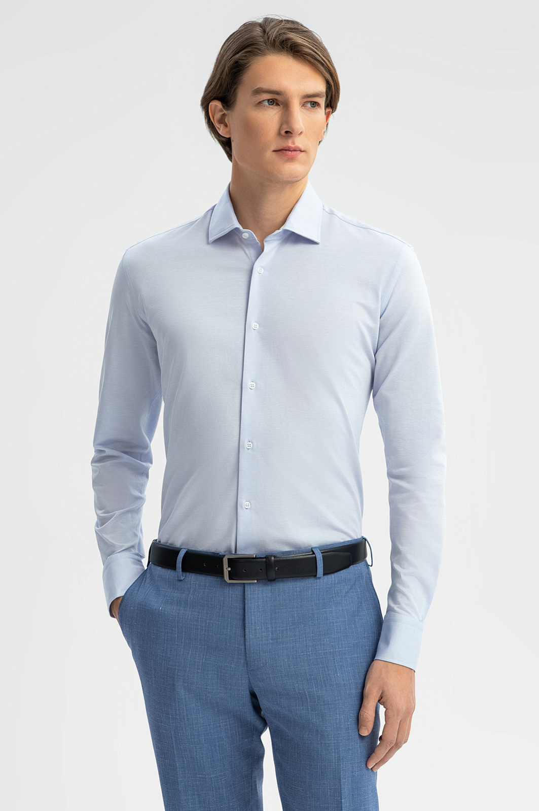 Голубая сорочка из трикотажной ткани
