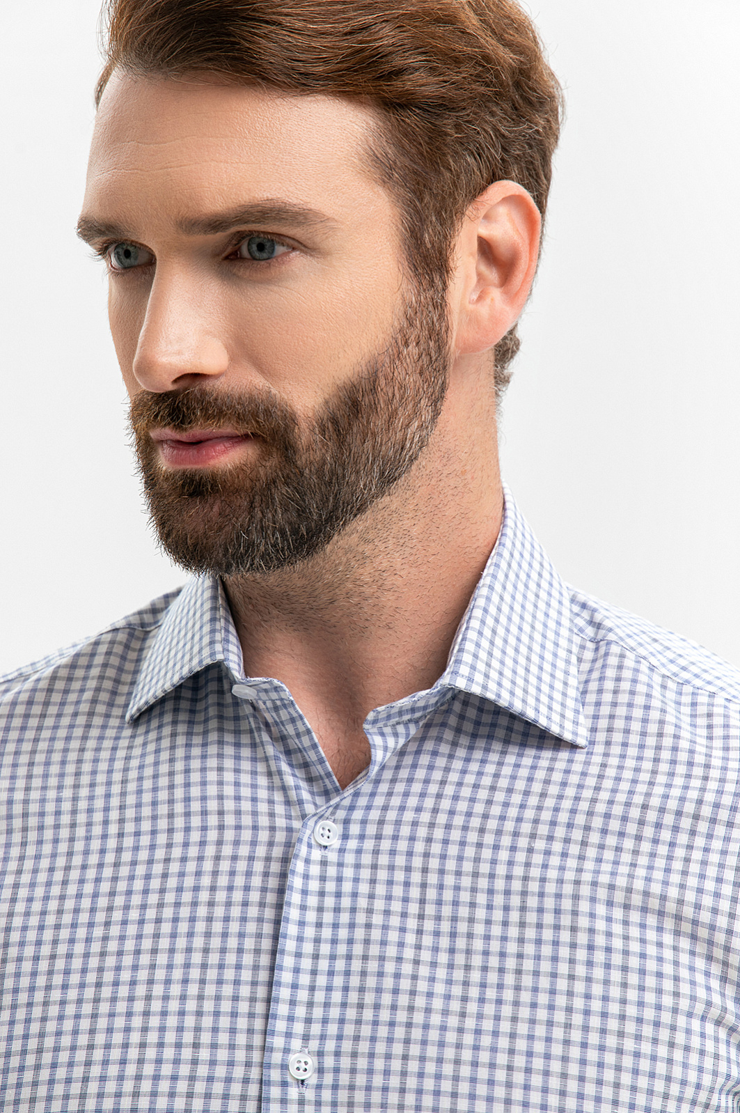 Белая сорочка KANZLER в мелкую голубую клетку — незаменимая вещь делового гардероба для повседневных выходов. К ее достоинствам относятся классический крой, универсальный принт и благородный материал из хлопка и льна. Модель с классическим силуэтом комплементарно смотрится на фигуре любого типа. Ткань свободно облегает тело, не сковывая движений. В любой сезон носить сорочку приятно и комфортно. Натуральная смесовая ткань сделана из гипоаллергенных волокон. Воздушный хлопок (90%) обеспечивает циркуляцию воздуха. Прочный износоустойчивый лен (10%) хорошо впитывает влагу и обладает антистатическими свойствами. Параметры модели: рост 189, 102-80-99 Размер на модели: 40