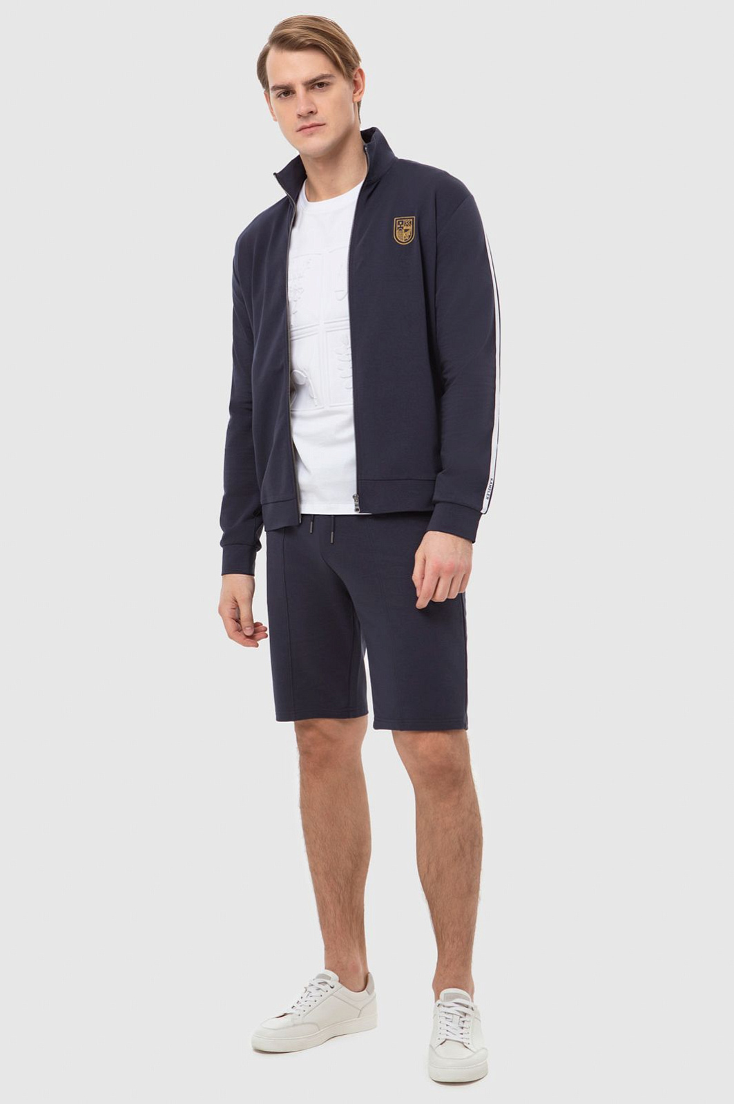 Темно-синяя спортивная толстовка KANZLER на молнии с высоким горлом из мягкого хлопкового материала вдохновляет на активный образ жизни. Универсальная модель подойдет как в качестве спортивной, так и просто удобной одежды в стиле урбан. Толстовку украшает фирменная эмблема, вышитая на груди, и двойная белая полоска-нашивка вдоль рукавов. Боковые карманы вмещают необходимые мелочи — ключи, карточку. Материал из натурального хлопка усилен полиэстером — для прочности, и эластаном — для растяжимости и сохранения формы. Толстовка сочетается со спортивными темно-синими брюками-джоггерами KANZLER.