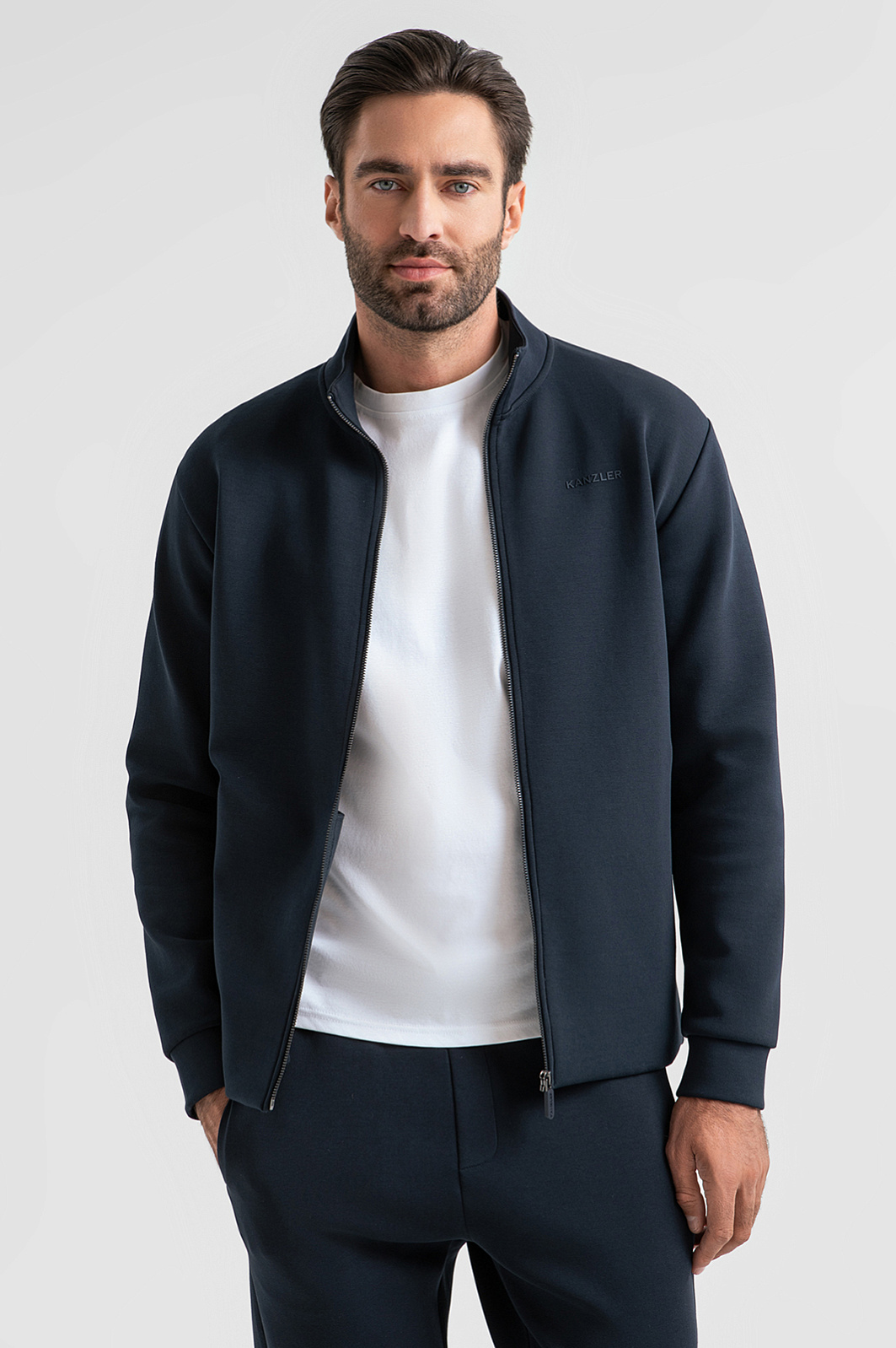 Толстовка KANZLER на молнии красивого темно-серого оттенка — воплощение минимализма и спортивного шика. Модель адресована жителю мегаполиса, который много и с удовольствием двигается в течение дня. Не перегруженный деталями лаконичный крой задает стремительный динамичный силуэт. Выпуклый логотип на широкой вставке вдоль бокового шва на рукавах служит стильным акцентом. Мягкие широкие трикотажные резинки на рукавах и внизу, на спинке, обеспечивают хорошую посадку. Для создания костюма в едином стиле толстовку можно дополнить серыми брюками KANZLER на кулиске. Параметры модели: рост 192, 108-83-102 Размер на модели: M