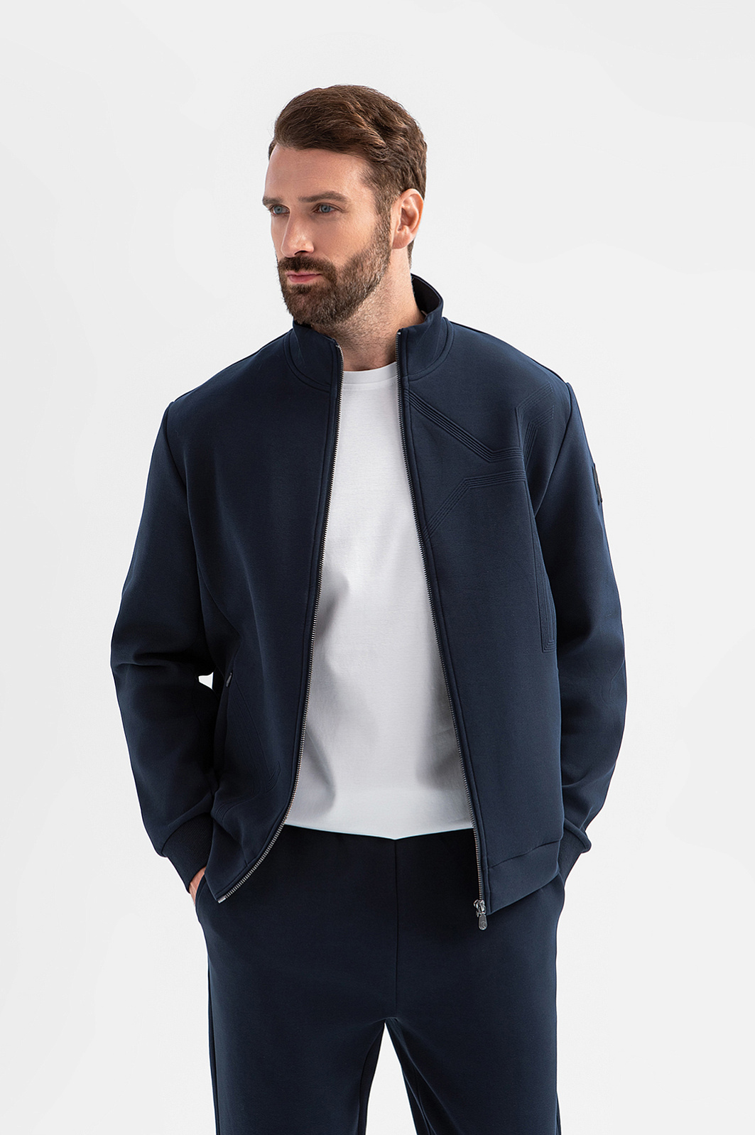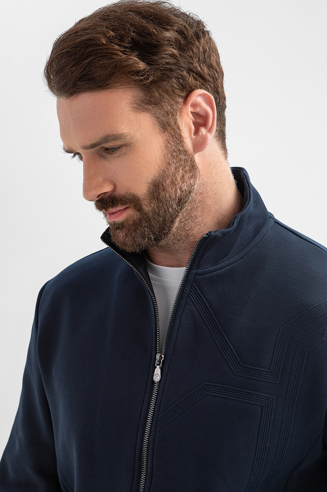 Толстовка KANZLER на молнии тёмно-синего цвета из чистого хлопка — стильная модель со спортивным характером. Для создания цельного костюма, который будет удобен для прогулок и занятий спортом, её можно дополнить джоггерами в тон. Лаконичный крой оживляет графичная нашивка на груди — акцент, задающий динамику образа. Мягкая дышащая смесовая ткань делает модель особенно функциональной: натуральный гипоаллергенный хлопок обеспечивает воздухопроницаемость, полиэстер — сохранение формы и износостойкость, спандекс — эластичность. Внутренняя подкладка из 100-процентного хлопка поддерживает комфорт и свежесть на весь день. Параметры модели: рост 189, 102-80-99 Размер на модели: M