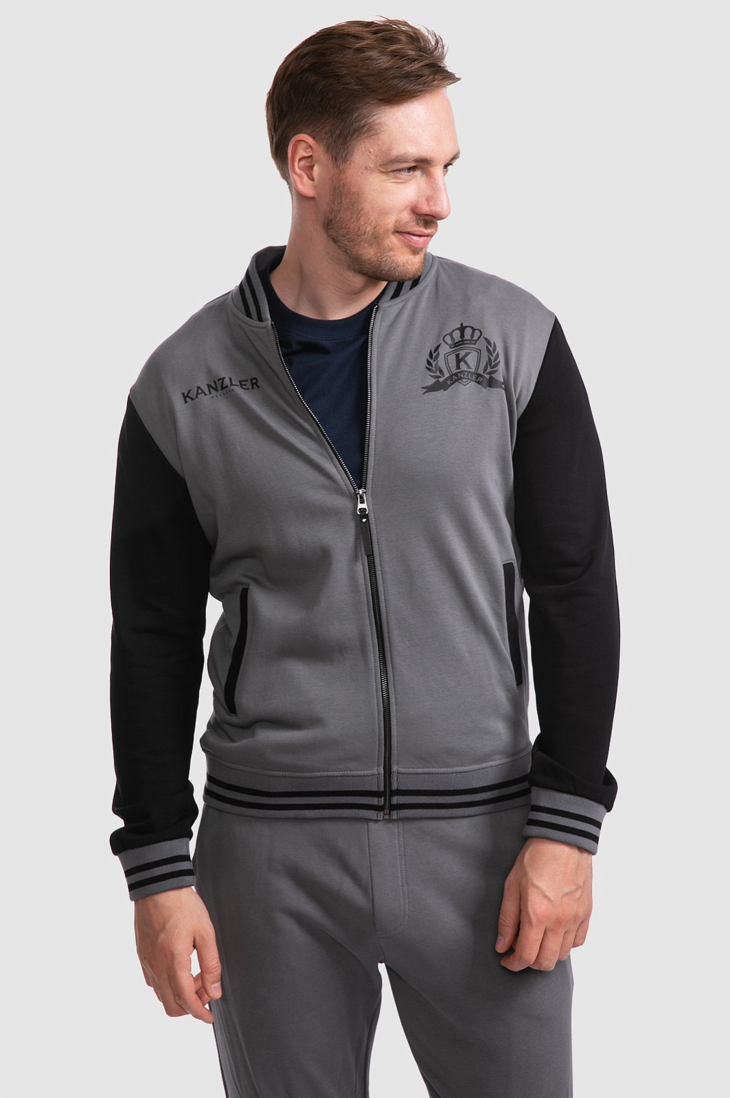 Представляем спортивную куртку KANZLER, выполненную в стильном и одновременно универсальном сочетании графитового и черного цветов. Брендовая символика на передней полочке и дизайн бомбер выводят модель за пределы только спортивного стиля, делая актуальным элементом кежуал луков. Состав ткани - хлопок с небольшим добавлением полиэстера - это лучшее сочетание для спортивной одежды. Хлопок обеспечивает великолепный воздухообмен, впитывание и отведение влаги, полиэстер повышает прочность и износостойкость материала - куртка хорошо сохраняет исходную форму, не линяет и легко отстирывается от любых загрязнений.