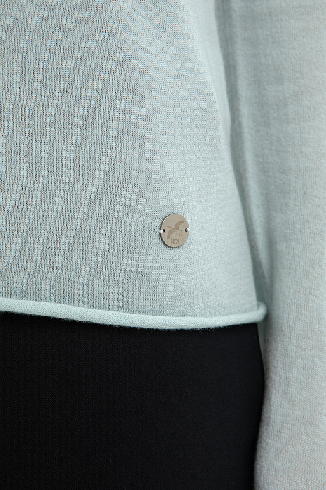 Водолазка KANZLER нежнейшего бирюзового оттенка из шерсти с кашемиром подчеркивает в образе хрупкую женственность и свежесть. Модель сочетается как с удобными повседневными, так и элегантными классическими вещами. Тонкий трикотаж свободно облегает тело. Круглый фирменный шильдик из металла служит небольшой акцентной деталью. Дорогая натуральная ткань состоит из шерсти и кашемира. На улице она согревает, а в помещении поддерживает оптимальную для тела температуру. Ценный кашемир придает материалу приятные тактильные свойства. Параметры модели: рост 177, 85-61-92 Размер на модели: S
